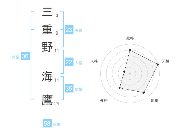 三重野 海鷹さんを姓名の画数から五運を鑑定