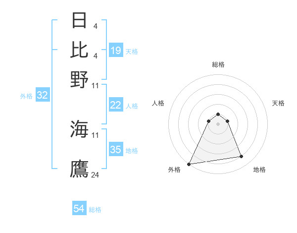 日比野 海鷹さんの外格は32画の5点!