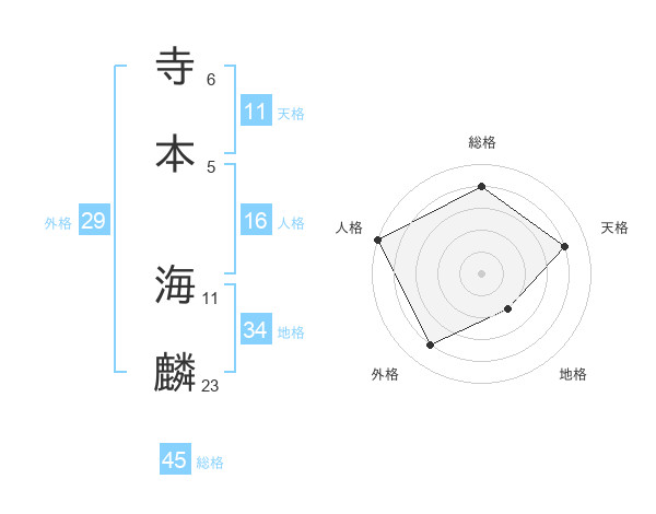 寺本 海麟さんを姓名の画数から五運を鑑定