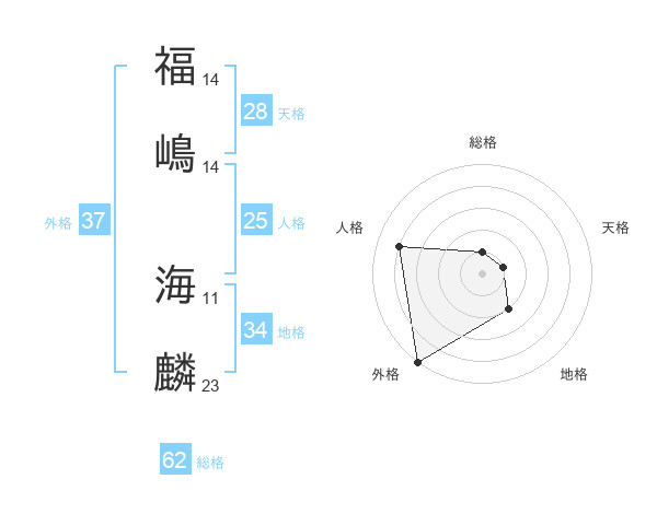 福嶋 海麟さんの外格は37画の5点!
