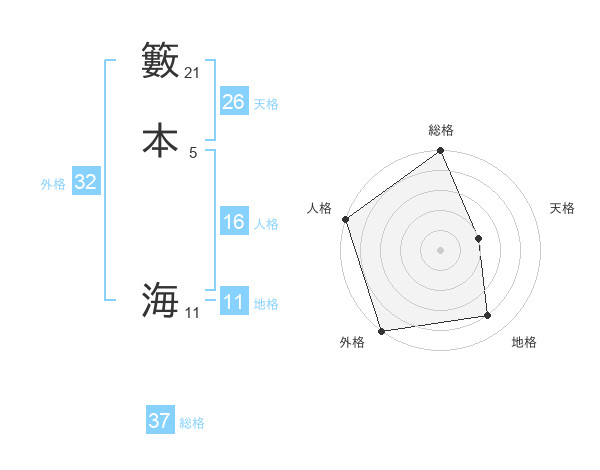籔本 海さんの総格は37画の5点!