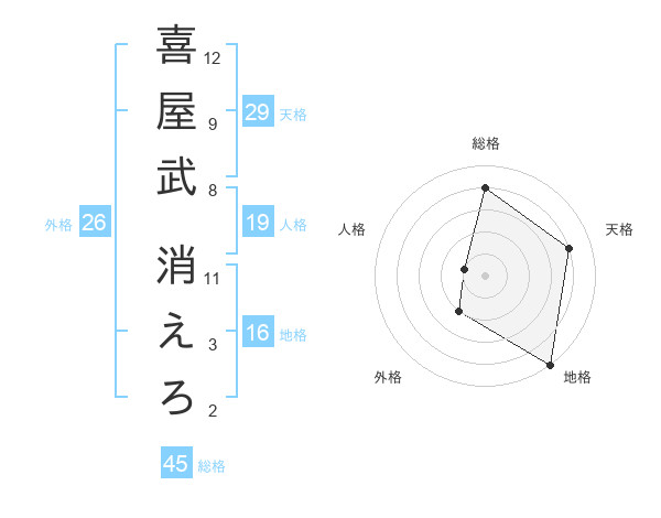 喜屋武 消えろさんを姓名の画数から五運を鑑定