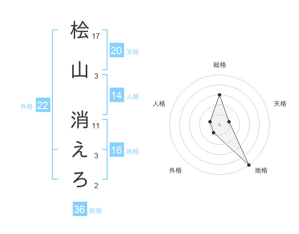 桧山 消えろさんを姓名の画数から五運を鑑定
