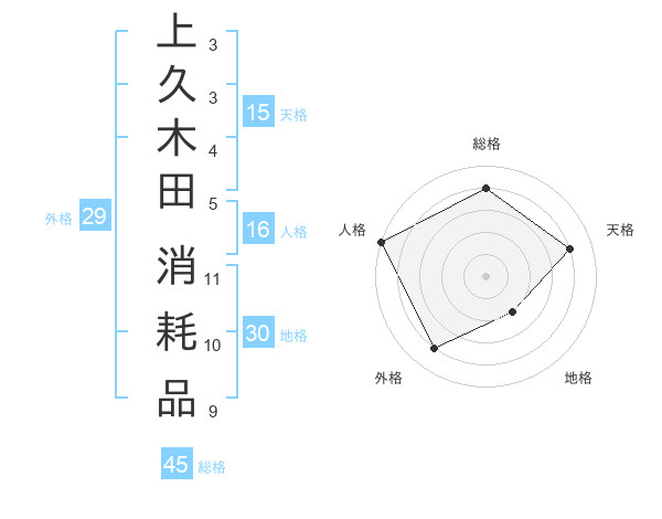 上久木田 消耗品さんを姓名の画数から五運を鑑定