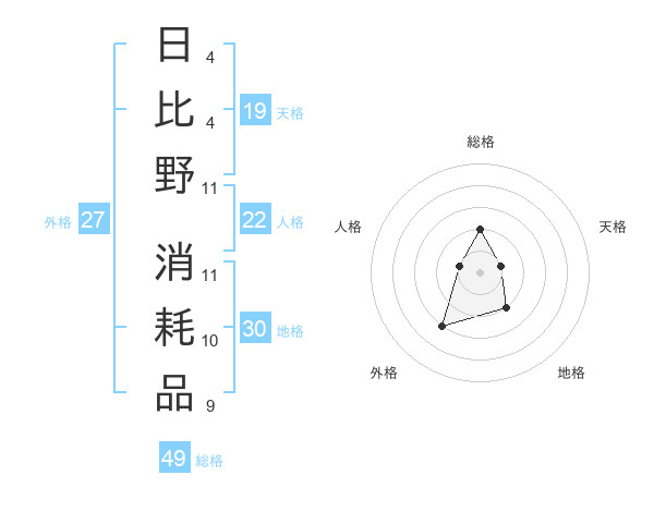 日比野 消耗品さんの総格は49画の2点!