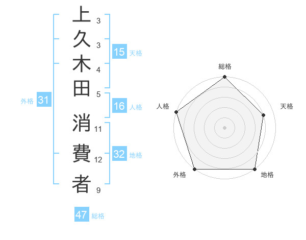 上久木田 消費者さんの総格は47画の5点!