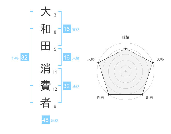 大和田 消費者さんを姓名の画数から五運を鑑定