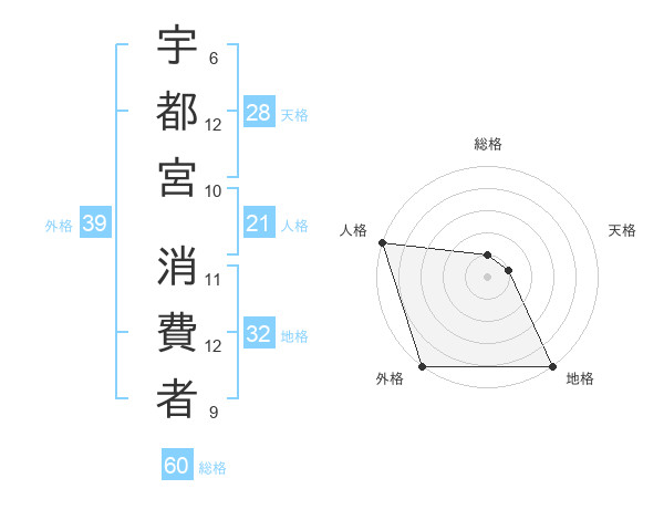 宇都宮 消費者さんの地格は32画の5点!