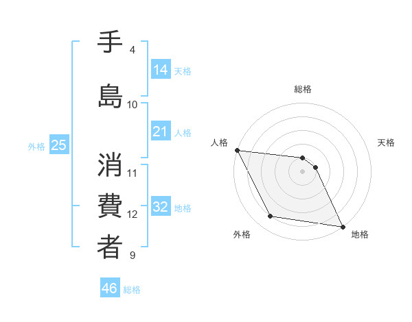 手島 消費者さんの地格は32画の5点!