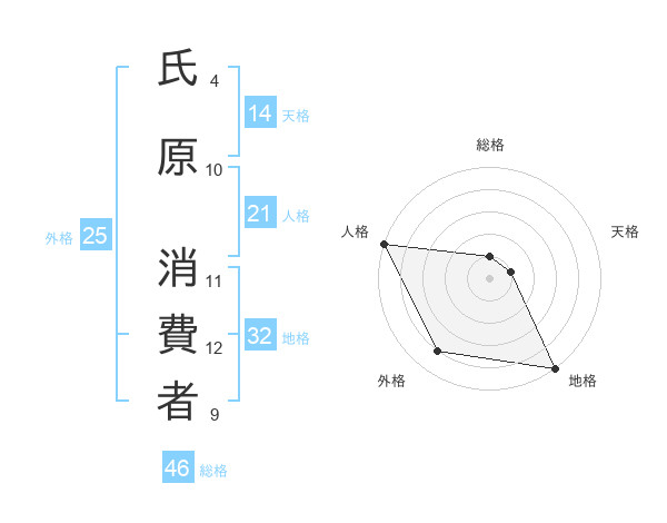 氏原 消費者さんを姓名の画数から五運を鑑定