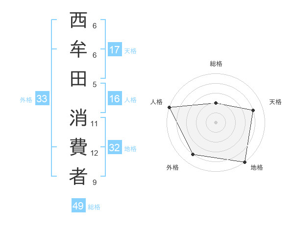 西牟田 消費者さんを姓名の画数から五運を鑑定