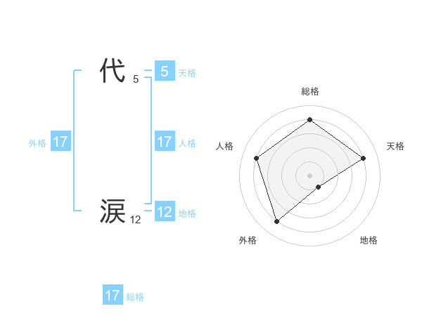 代 涙さんの外格は17画の4点!