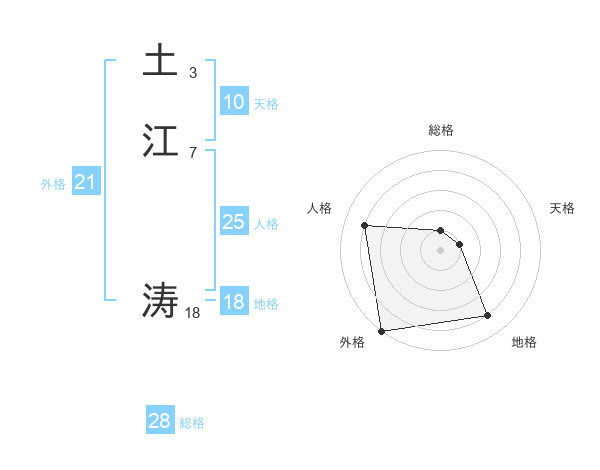 土江 涛さんの外格は21画の5点!