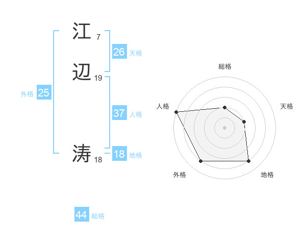 江辺 涛さんの総格は44画の2点!