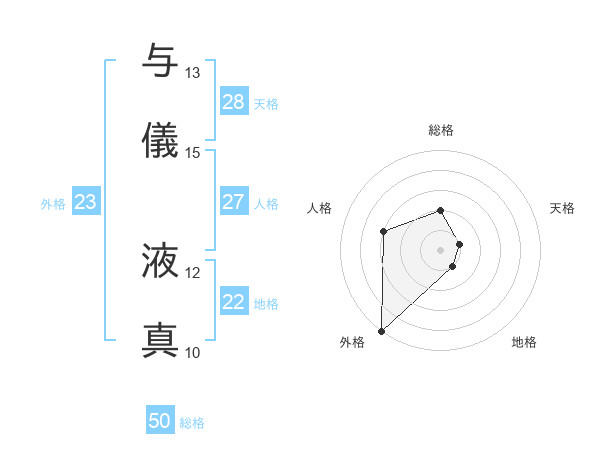 与儀 液真さんの外格は23画の5点!
