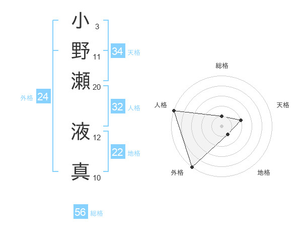 小野瀬 液真さんを姓名の画数から五運を鑑定