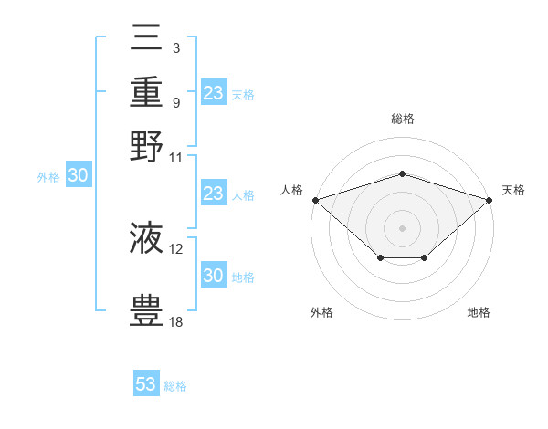 三重野 液豊さんの総格は53画の3点!