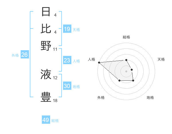 日比野 液豊さんを姓名の画数から五運を鑑定