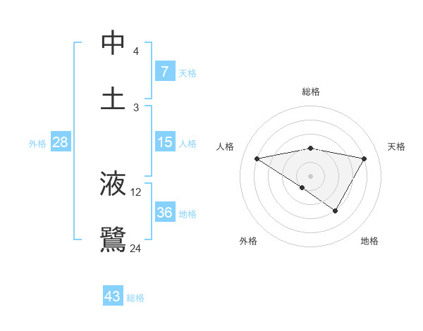 中土 液鷺さんの総格は43画の2点!