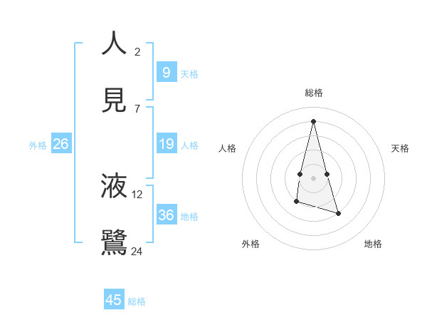 人見 液鷺さんの総格は45画の4点!