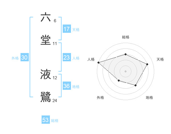 六堂 液鷺さんを姓名の画数から五運を鑑定