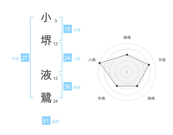 小堺 液鷺さんの総格は51画の3点!