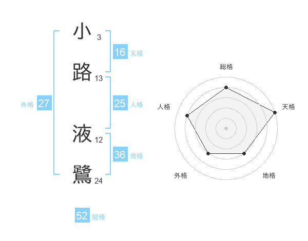 小路 液鷺さんを姓名の画数から五運を鑑定