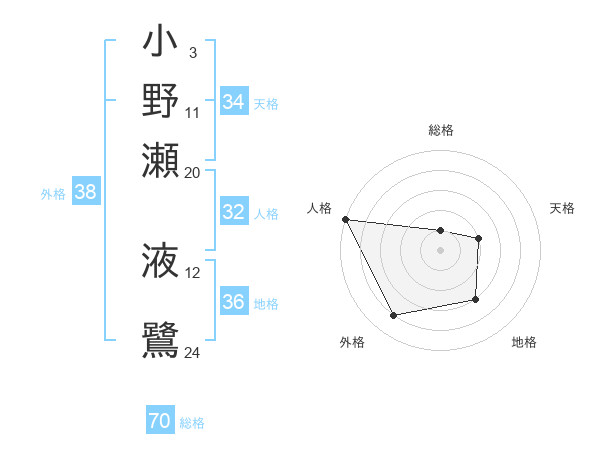 小野瀬 液鷺さんの総格は70画の1点