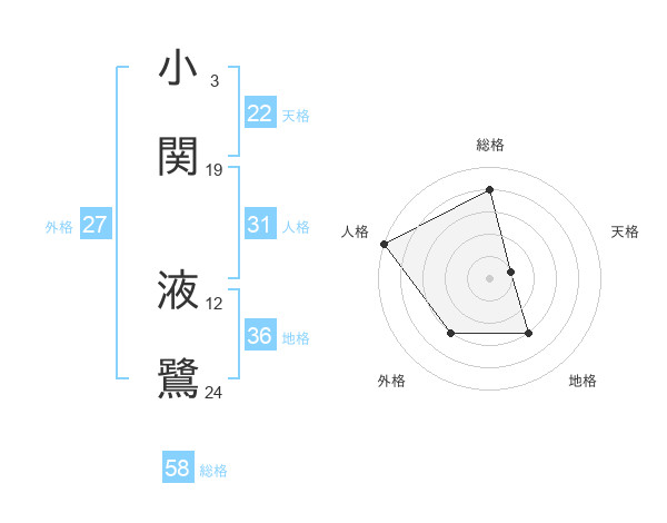 小関 液鷺さんを姓名の画数から五運を鑑定