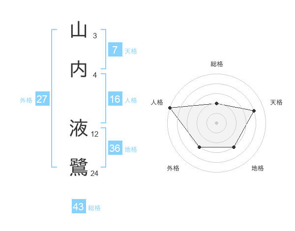 山内 液鷺さんを姓名の画数から五運を鑑定