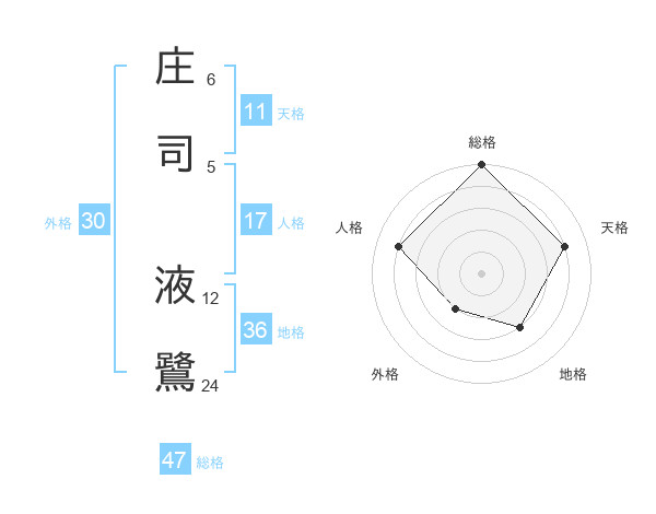 庄司 液鷺さんを姓名の画数から五運を鑑定