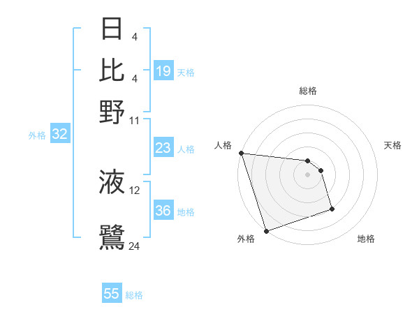 日比野 液鷺さんを姓名の画数から五運を鑑定