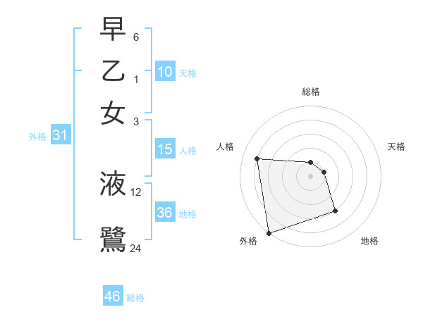 早乙女 液鷺さんを姓名の画数から五運を鑑定
