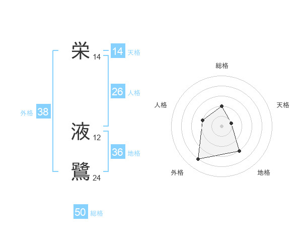 栄 液鷺さんの総格は50画の2点!