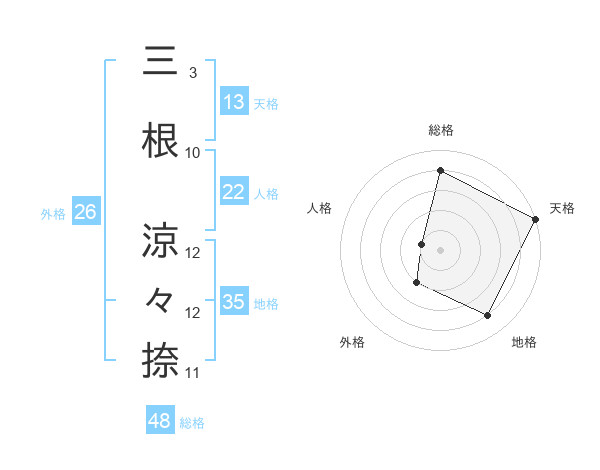 三根 涼々捺さんを姓名の画数から五運を鑑定