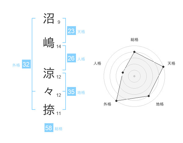 沼嶋 涼々捺さんを姓名の画数から五運を鑑定