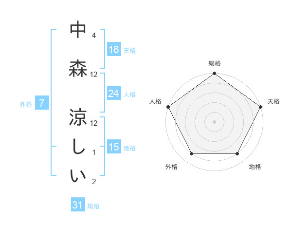 中森 涼しいさんを姓名の画数から五運を鑑定