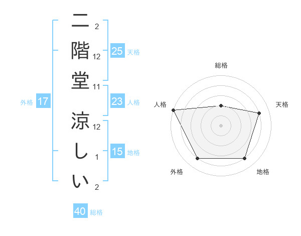二階堂 涼しいさんを姓名の画数から五運を鑑定