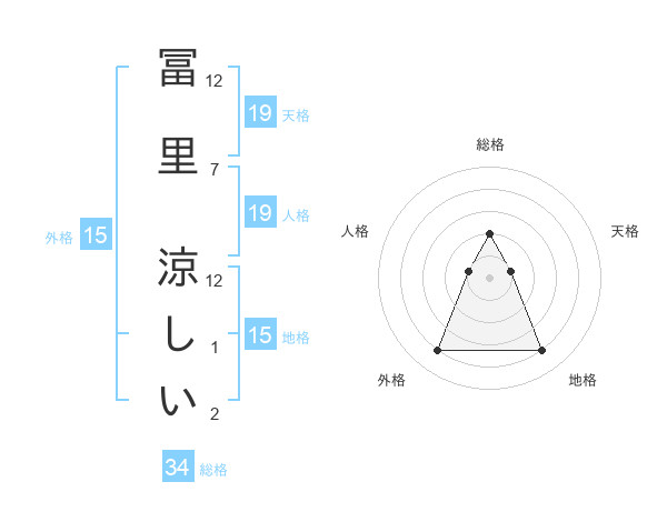 冨里 涼しいさんの総格は34画の2点!