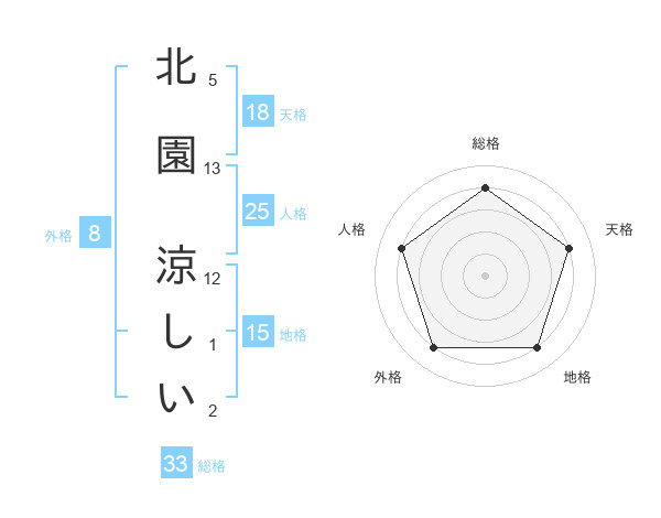 北園 涼しいさんを姓名の画数から五運を鑑定