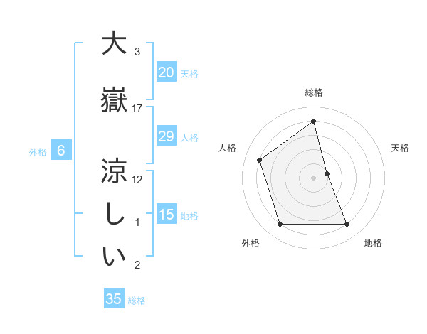 大嶽 涼しいさんを姓名の画数から五運を鑑定