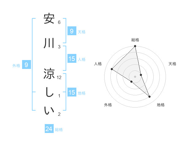 安川 涼しいさんの総格は24画の5点!