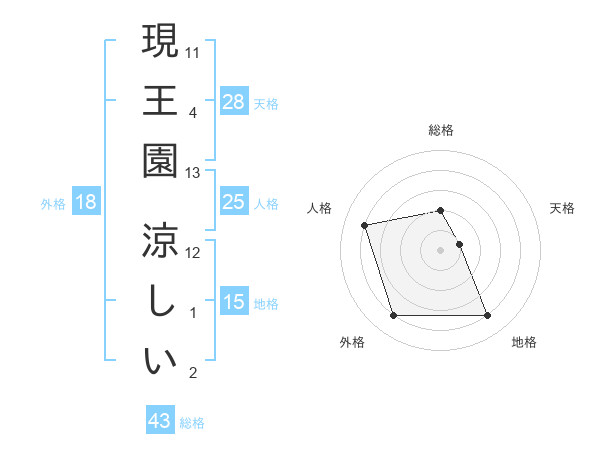 現王園 涼しいさんを姓名の画数から五運を鑑定