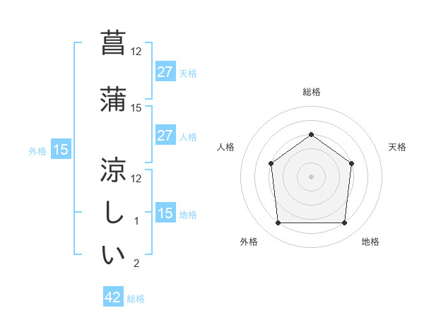 菖蒲 涼しいさんを姓名の画数から五運を鑑定