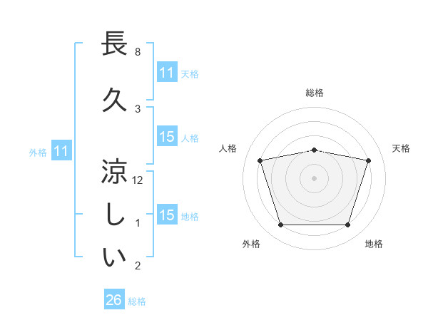 長久 涼しいさんを姓名の画数から五運を鑑定