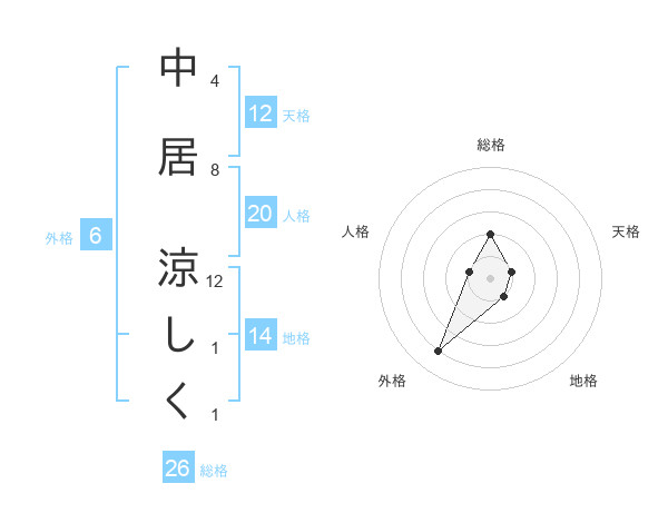 中居 涼しくさんを姓名の画数から五運を鑑定