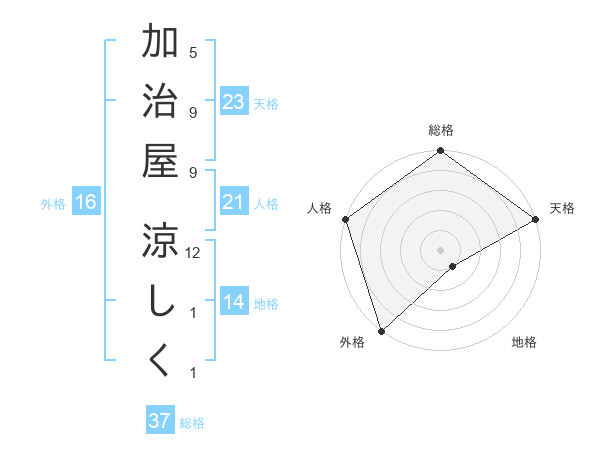 加治屋 涼しくさんを姓名の画数から五運を鑑定