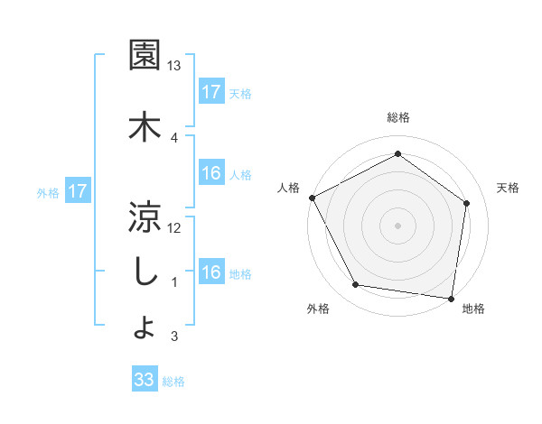 園木 涼しょさんの天格は17画の4点!