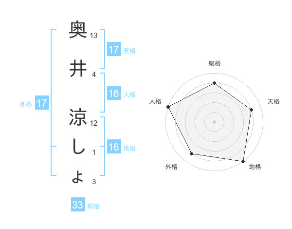 奥井 涼しょさんを姓名の画数から五運を鑑定