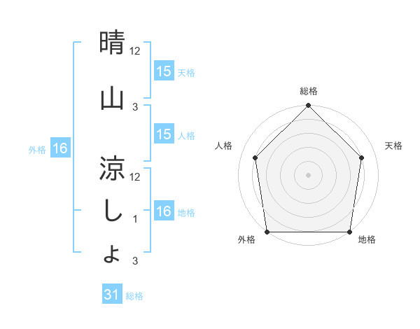 晴山 涼しょさんを姓名の画数から五運を鑑定